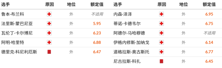 伤停统计: