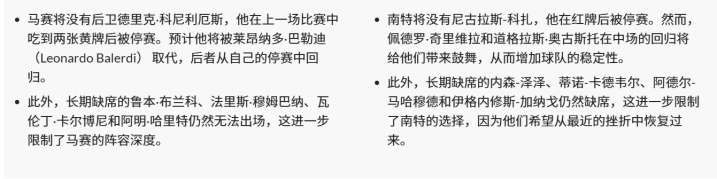 南特队并不擅长客场作战,南特迎来中场球员奇里韦拉停赛期满回归,但卡德韦雷和泽泽这两名球员仍在康复中。